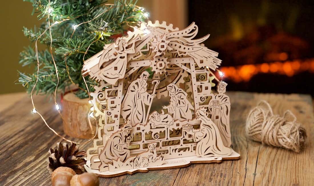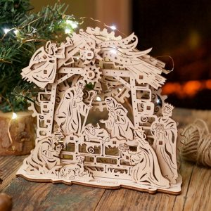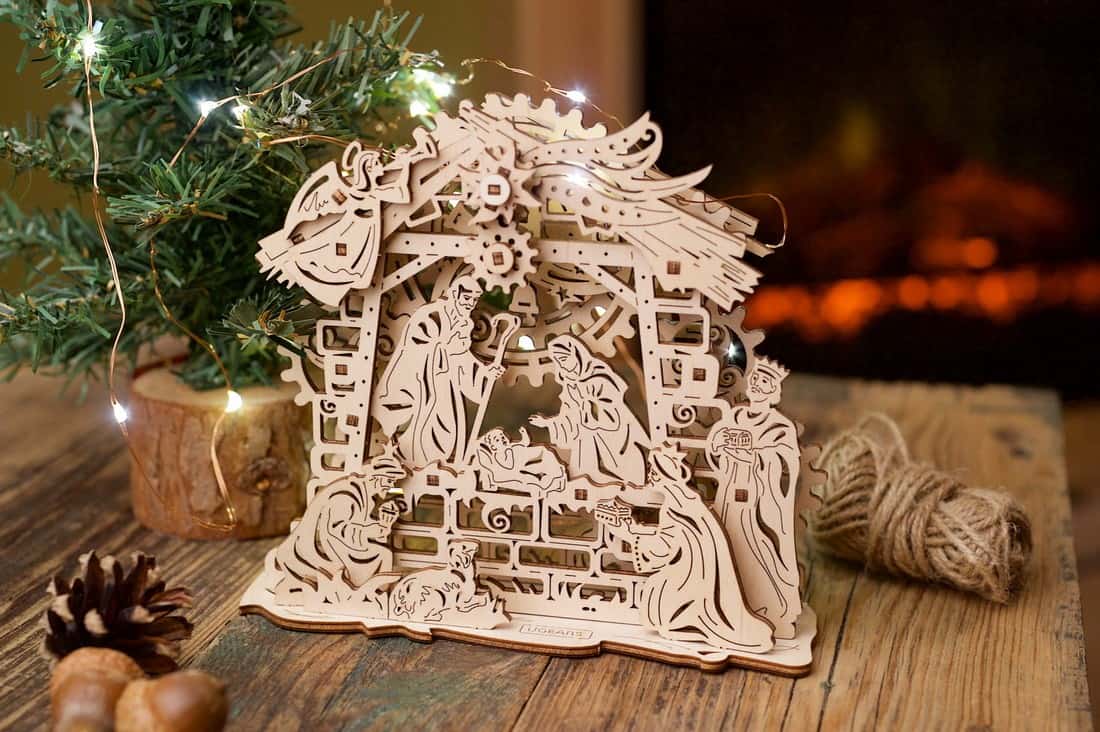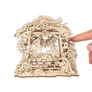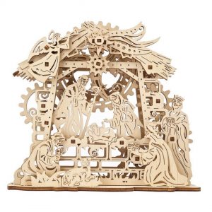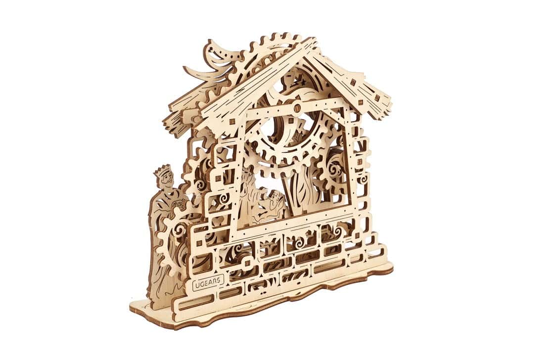 Почти всяка страна, която празнува Коледа, има традиция да монтира Сцената на рождество: излагане, което включва новородения Исус в ясла с Мария, Йосиф, ангел и тримата влъхви. На различните места и нагласи броят герои и подходът към декориране на сцената може да варират, показвайки ято ангели, овчари, много скъп декор и т.н. Ugears са създали скромен и нежен дизайн от дърво, който по най-добър начин чества раждането на божественото дете на дърводелеца Йосиф.